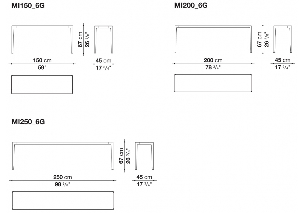 | Dimensions | 150 x 45 x H 67 cm; 200 x 45 x H 67 cm; 250 x 45 x H 67 cm. |