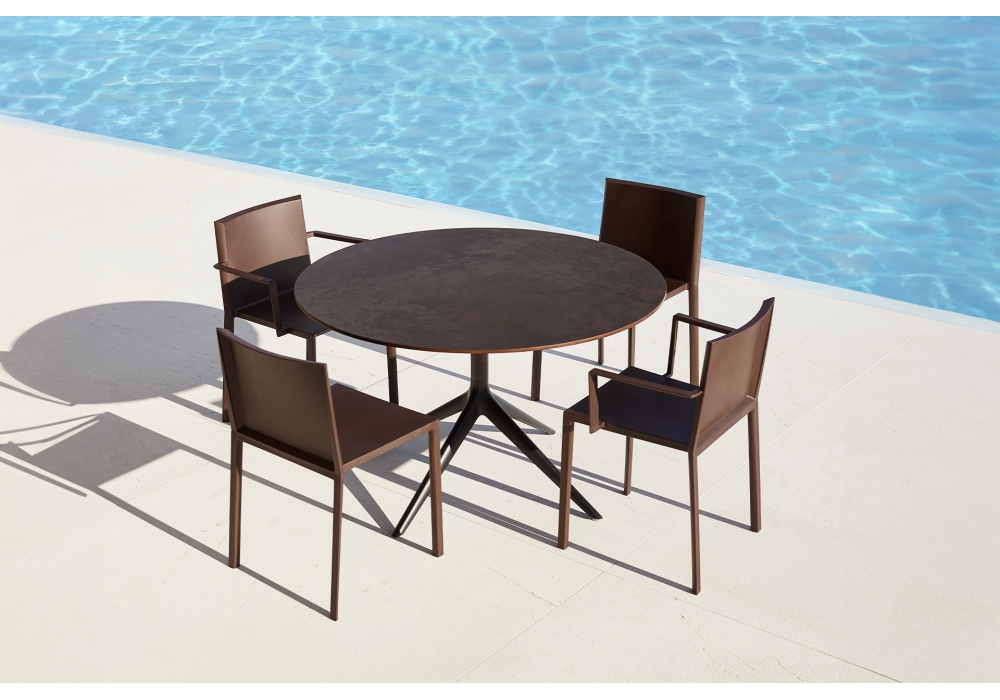 Mari-sol designed by Eugeni Quitllet for Vondom is a table with an aluminum base and an HPL or glass top. Available in various finishes and dimensions.