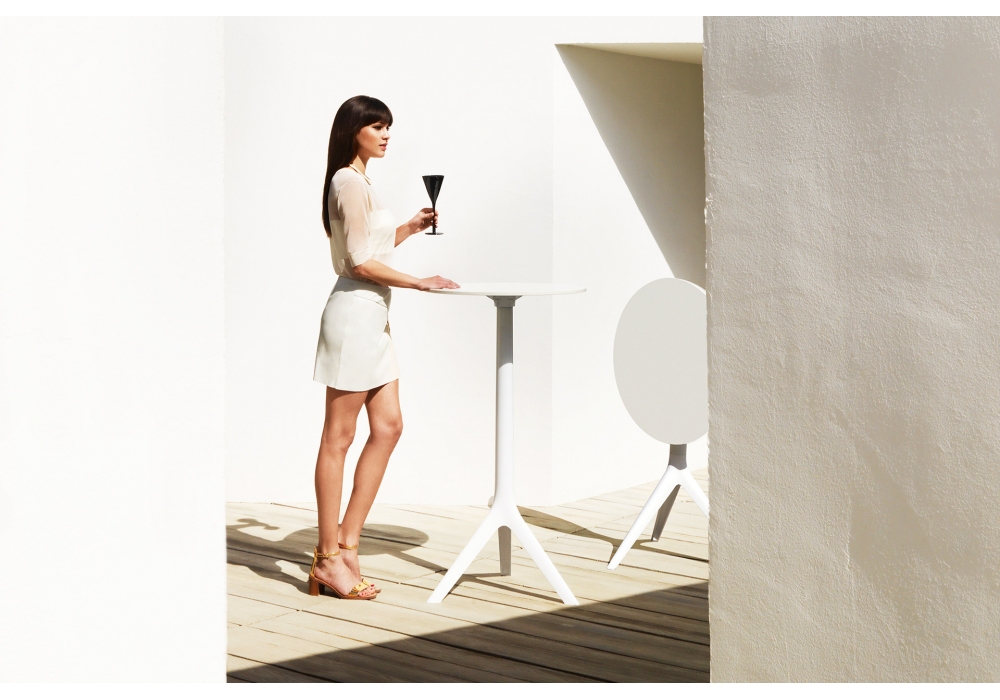 Mari-sol designed by Eugeni Quitllet for Vondom is a high table made with aluminum base and top in HPL, glass or Dekton ceramic. Available in different finishes and dimensions.