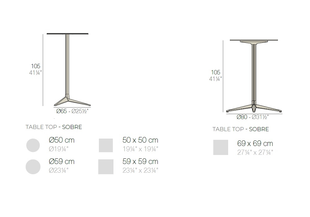 | Base | Ø 65 x H 105 cm; Ø 80 x H 105 cm |
