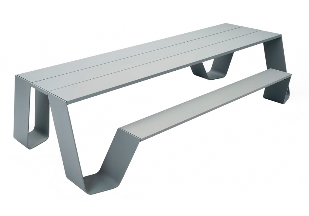Hopper Picnic AA designed by Dirk Wynants for Extremis is a picnic table made entirely of aluminum. Thanks to the four access points, there will be no more reason to constantly climb over the benches and disturb your neighbors. Available in different finishes.