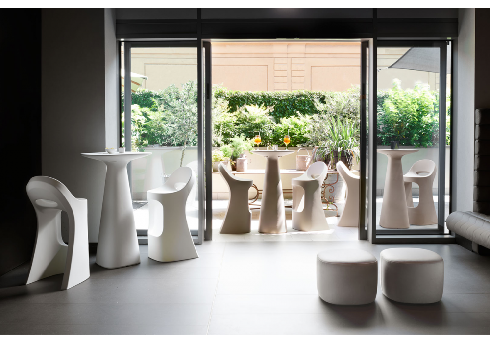 Amélie Up Slide designed by Italo Pertichini for Slide is a table with a conical line, which characterizes the entire Amélie collection, which supports a harmonious and resistant square top. Available in different finishes