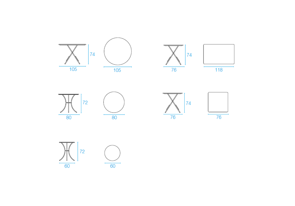 | Dimensions | Pigalle 903_ 118 x 76 x H 74 cm; Pigalle 904_ Ø 105 x H 74 cm; Pigalle 907_ 76 x 76 x H 74 cm. |