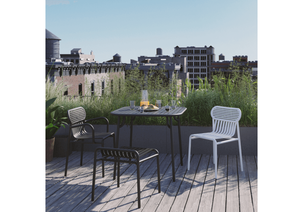 Week-end designed by Studio Brichet-Ziegler for Petite Friture is a square table made of aluminum for outdoor use. Available in different finishes.