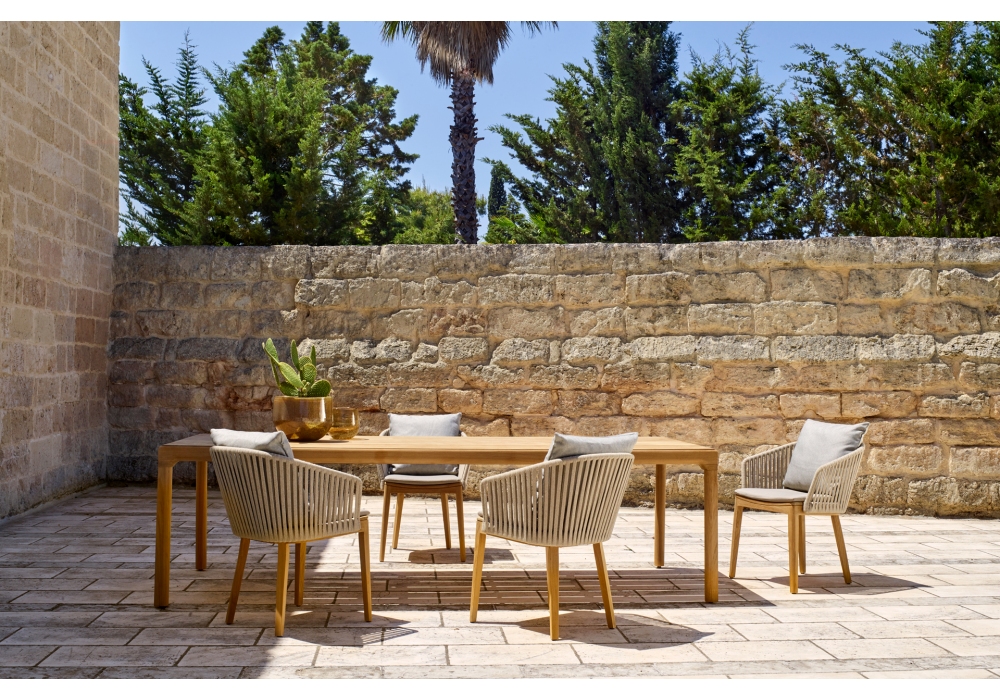 Illum Teak designed by Merckx & Maes for Tribù is a table with teak structure and top available in different materials and finishes. The table can be made in various sizes.