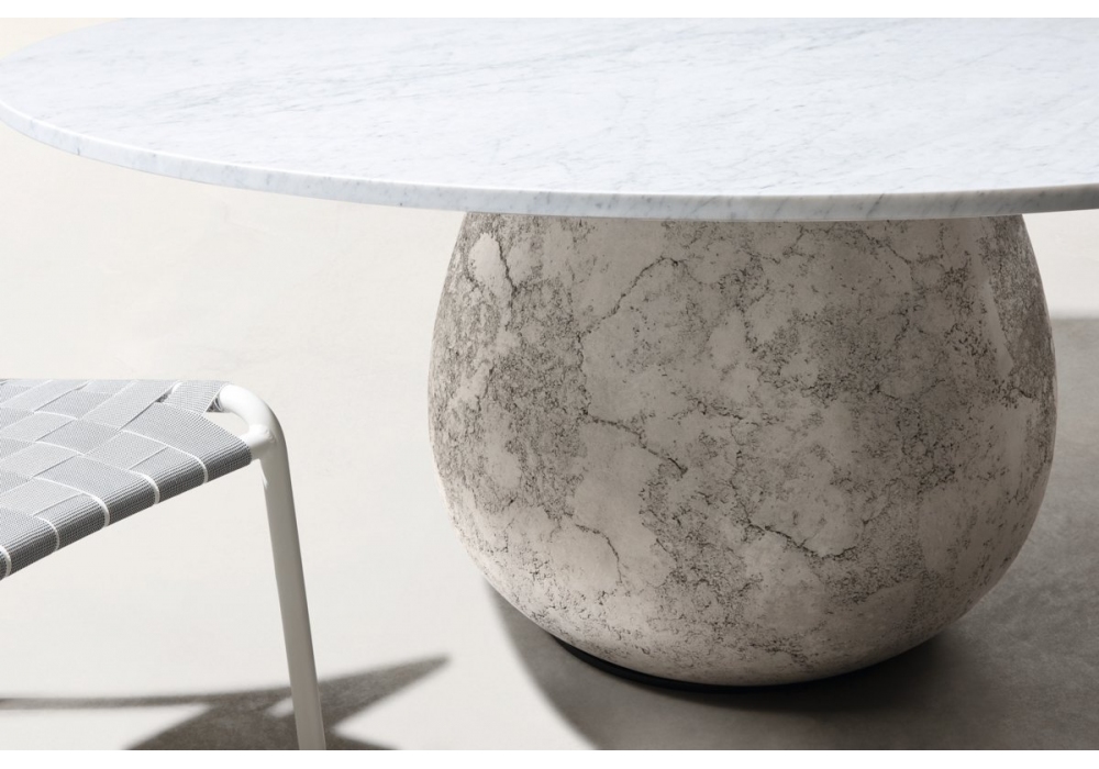 InOut designed by Paola Navone for Gervasoni is a round table made with a central base in concrete with a crackle finish and top in white Carrara marble. Available in 2 dimensions.