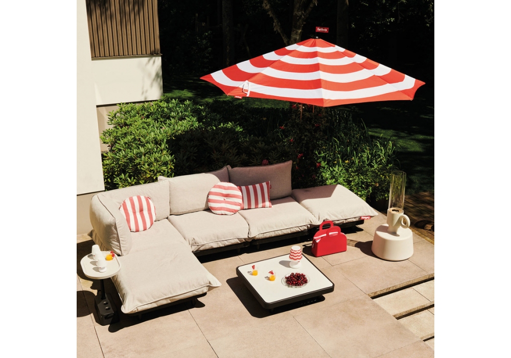 Brick Table designed by Fatboy is an outdoor table that fits anywhere, made of recycled materials and steel, the base can be filled with water or sand. You can change the position of the table by inserting it into one of the holes. You can also expand the surface with a second floor. Available in different finishes.