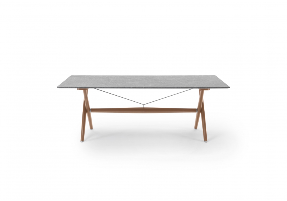 Boma Outdoor designed by Roberto Lazzeroni for Flexform is an outdoor table with solid wood structure and top in stone. It is available in different sizes and finishes.