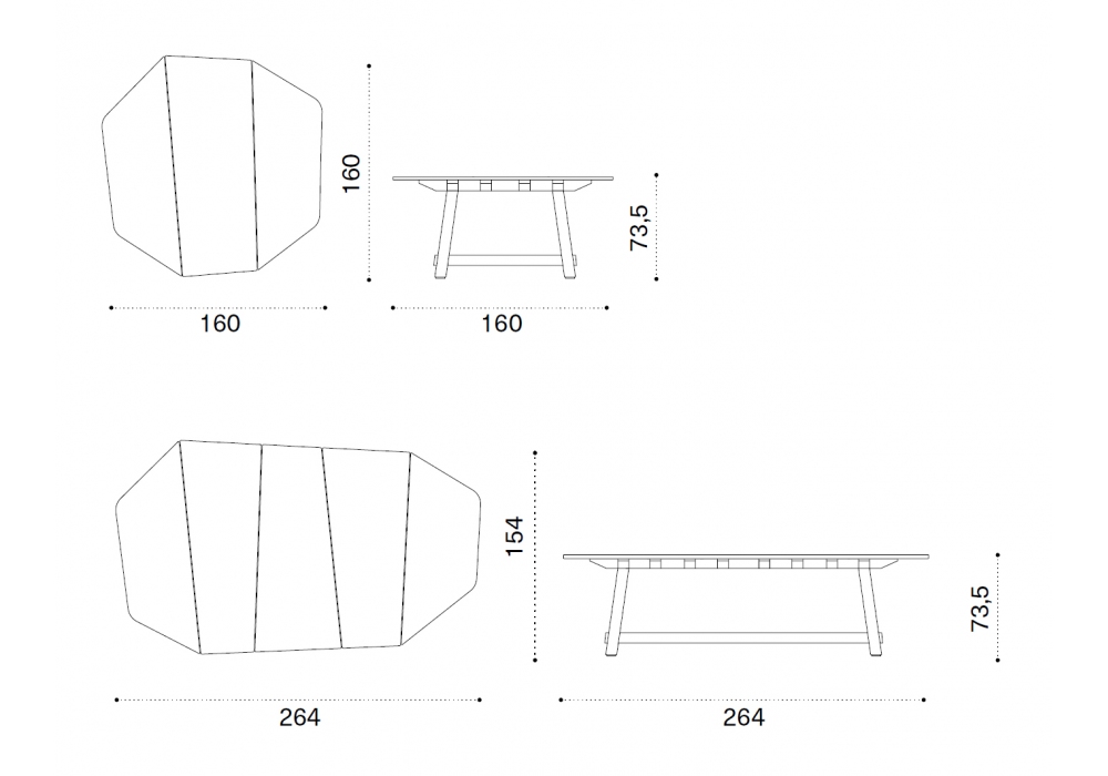 | Dimensions | 160 x 160 x H 73,5 cm; 264 x 155 x H 73,5 cm. |