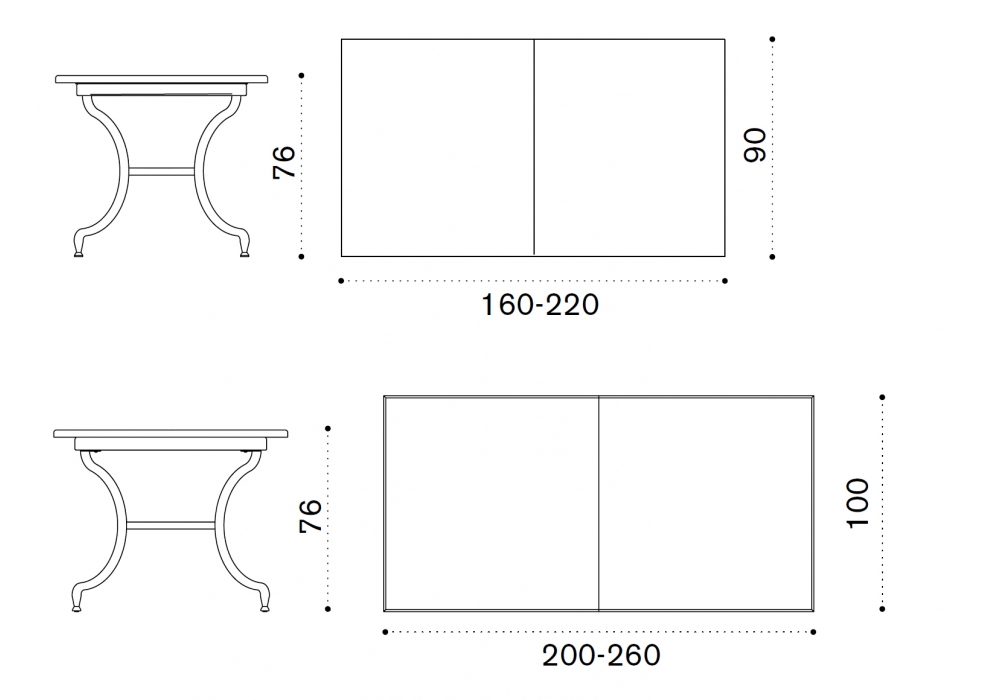 | Max Extension Length | Min 160 Max 220 cm; Min 200 Max 260 cm. |