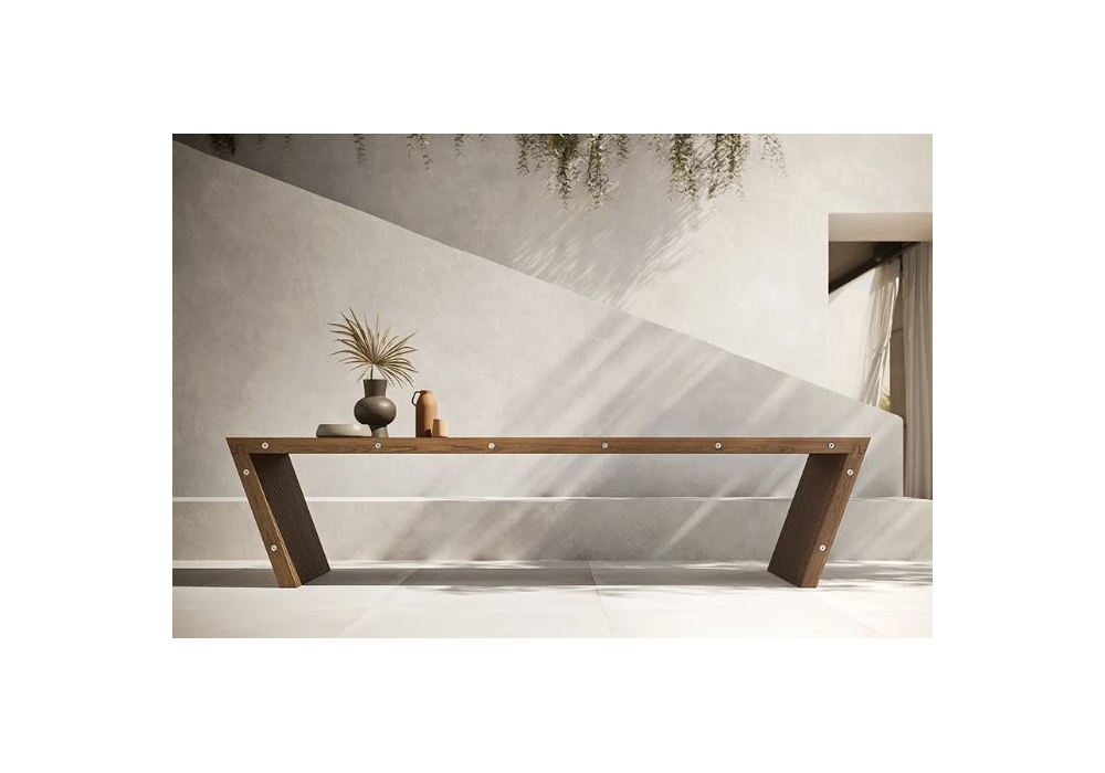 XY designed and produced by Modulnova is a table with structure made of heat-treated solid ash wood strips available in two finishes (Light and Dark), joined with threaded bars and the relative metalware in 316 stainless steel. makes it more solid and resistant to outdoor environments. Available in different sizes.