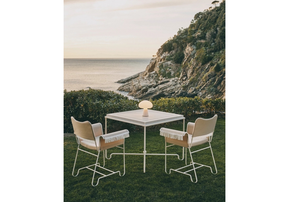 Tropique designed by Mathieu Matégot for Gubi is an outdoor table with frame made from stainless steel.
