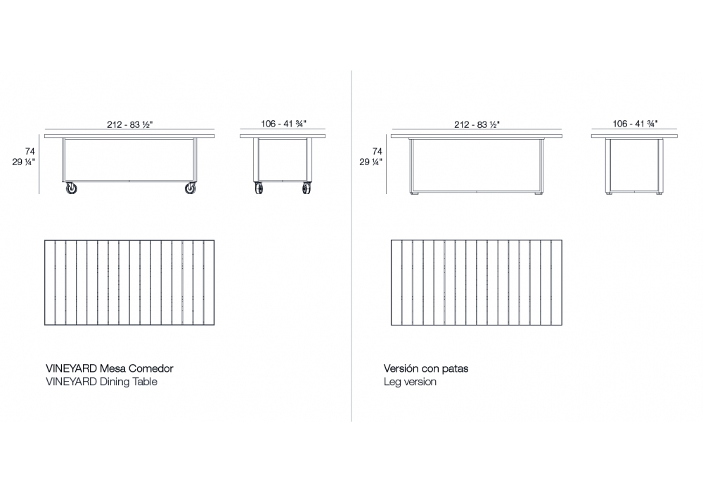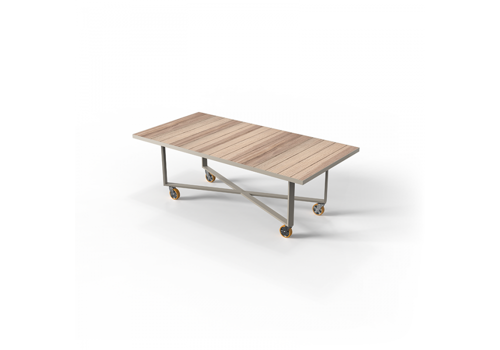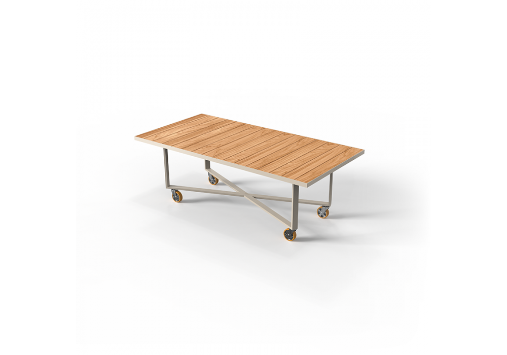 Vineyard designed by Ramón Esteve for Vondom is a table made with aluminum structure and wooden top. Available with wheels or with legs.