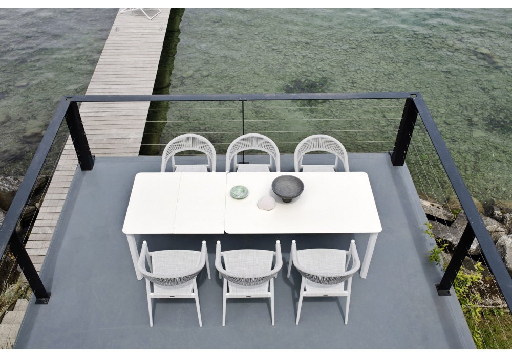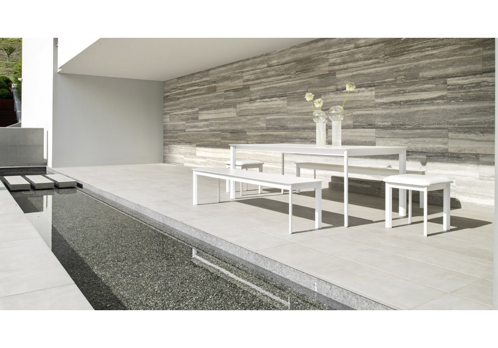 System designed by Daniele Lo Scalzo Moscheri for Varaschin is a table with powder coated aluminum structure and HPL or ceramic top. Available in different finishes and in various sizes.