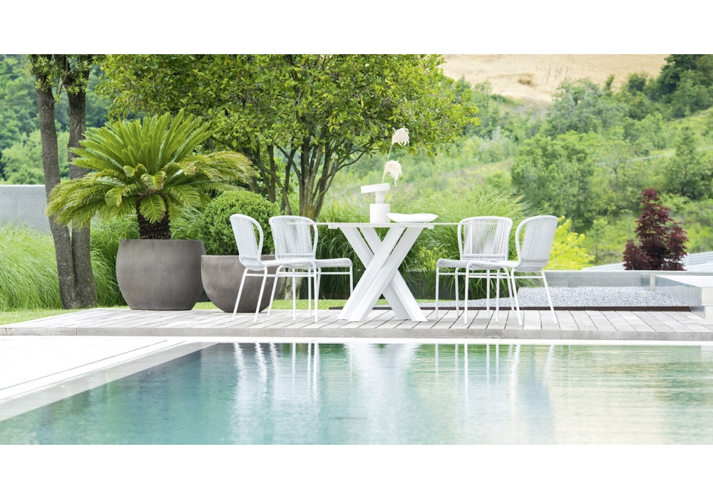 System Star designed by Daniele Lo Scalzo Moscheri for Varaschin is a table with powder coated aluminum structure and square, round, rectangular and elliptical tops in HPL or ceramic. Available in different finishes and in various sizes.