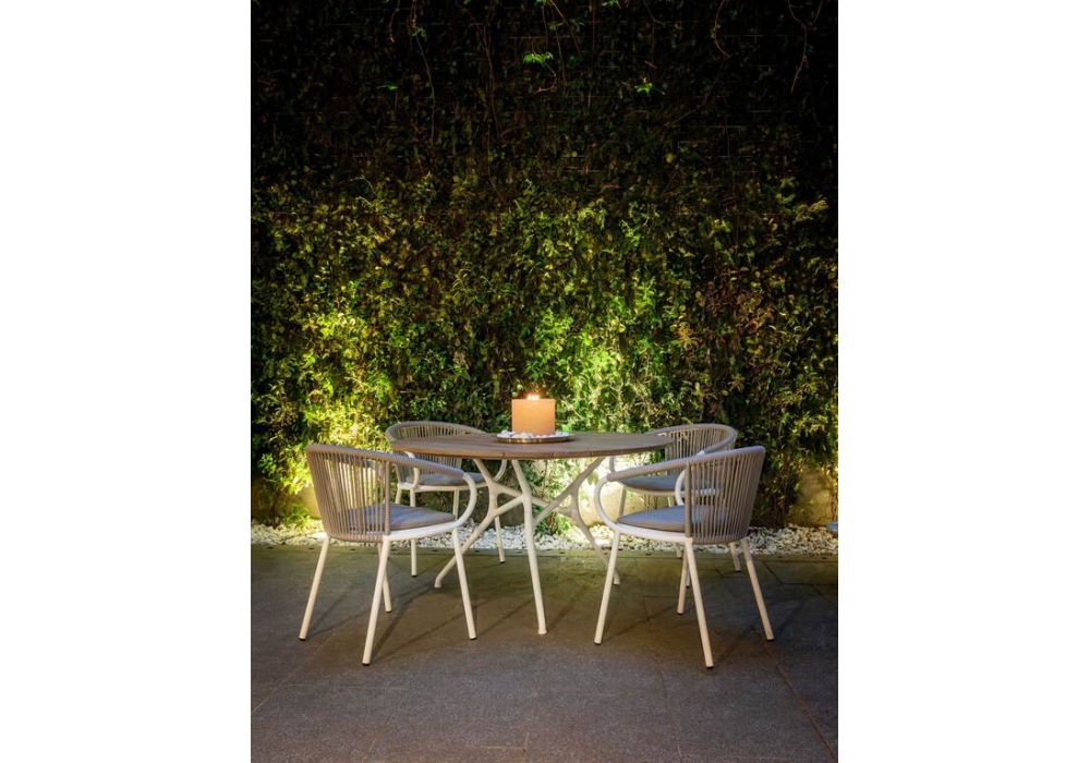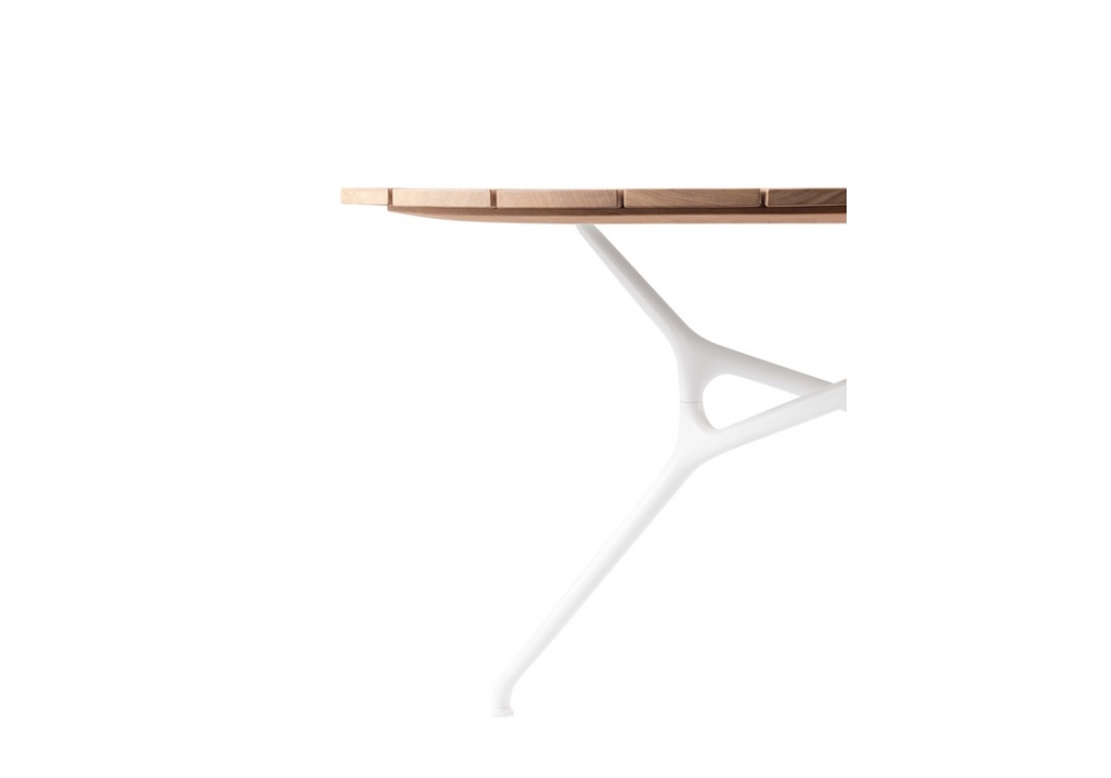 Branch Table Lido designed by Jakob Wagner for Cappellini is an outdoor table made with slatted top in raw solid iroko and base made up of modular elements connected to each other, made of die-cast aluminum, with embossed powder coating.