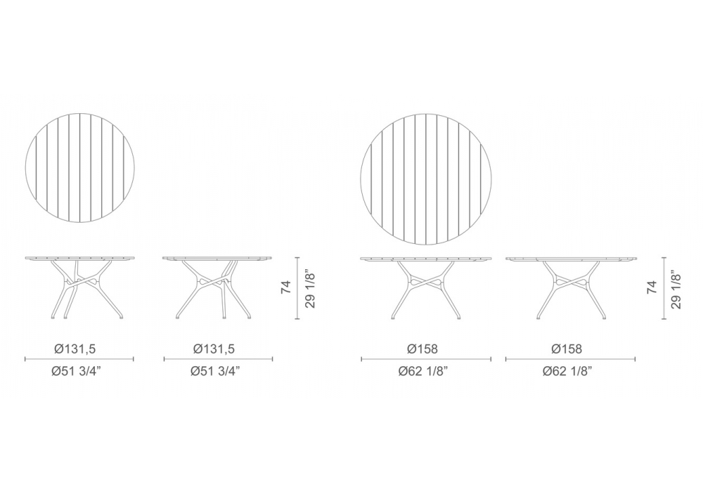 | Diameter | Ø 131.5 cm; Ø 158 cm. |