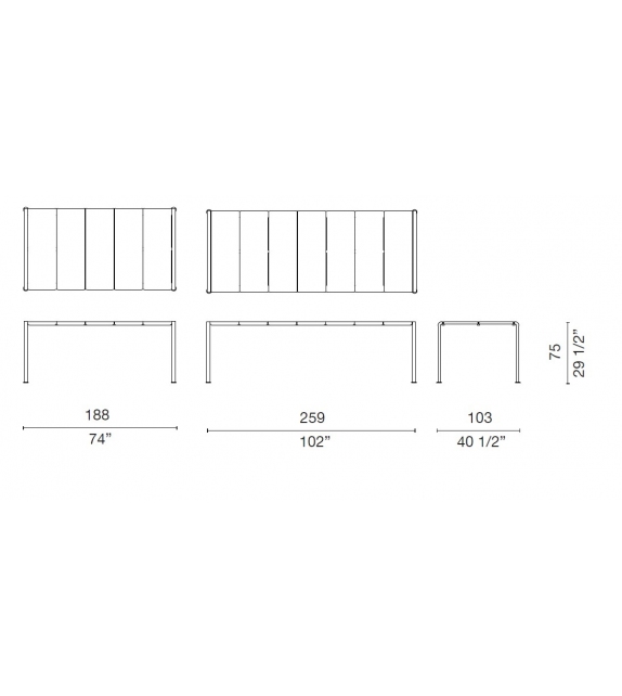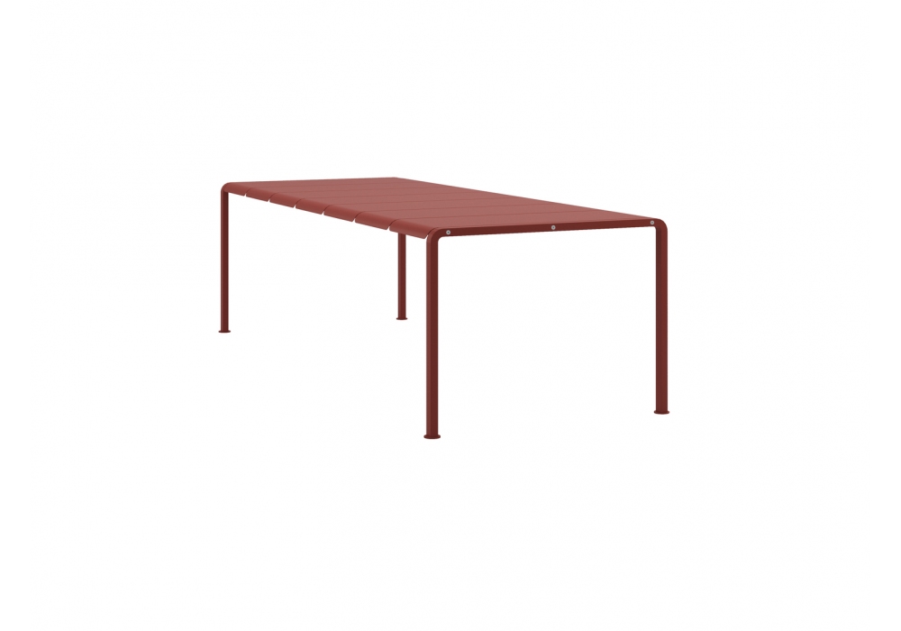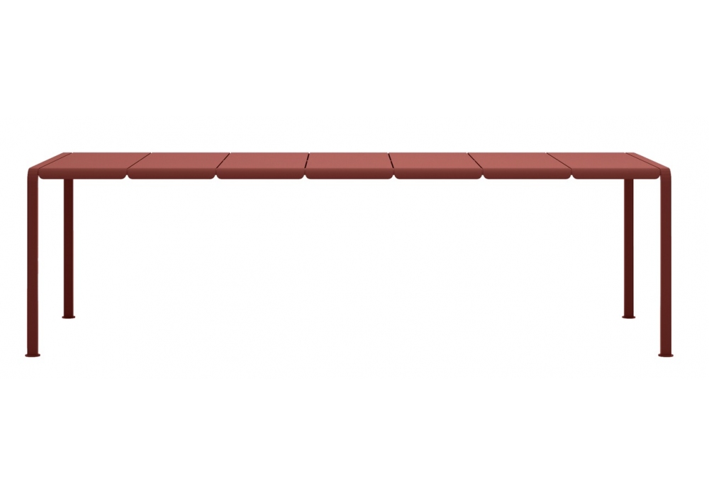 Vendicari Lido designed by Jangir Maddadi for Cappellini is an outdoor table made with a removable structure in AISI 304 stainless steel tubing and laser-cut and bent aluminum sheet top with embossed powder coating.