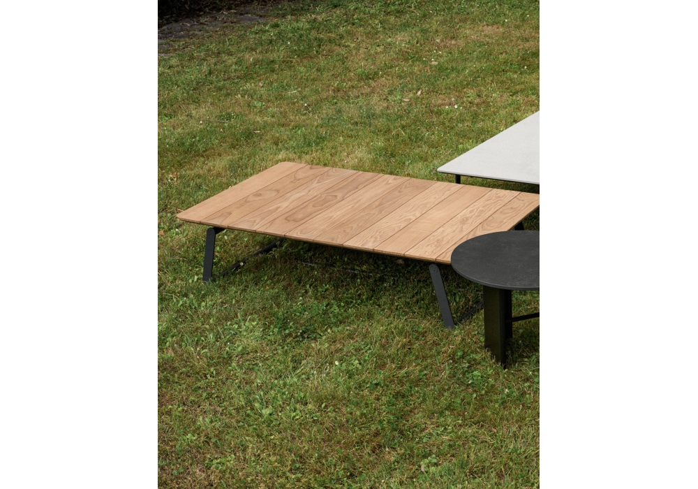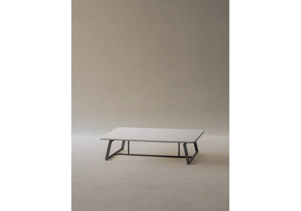 Soul designed by Gabriele and Oscar Buratti for Potocco is an outdoor coffee table with base in embossed athracite painted metal and top in ash, black oxide porcelain stoneware or natural stone. Available in two dimensions.