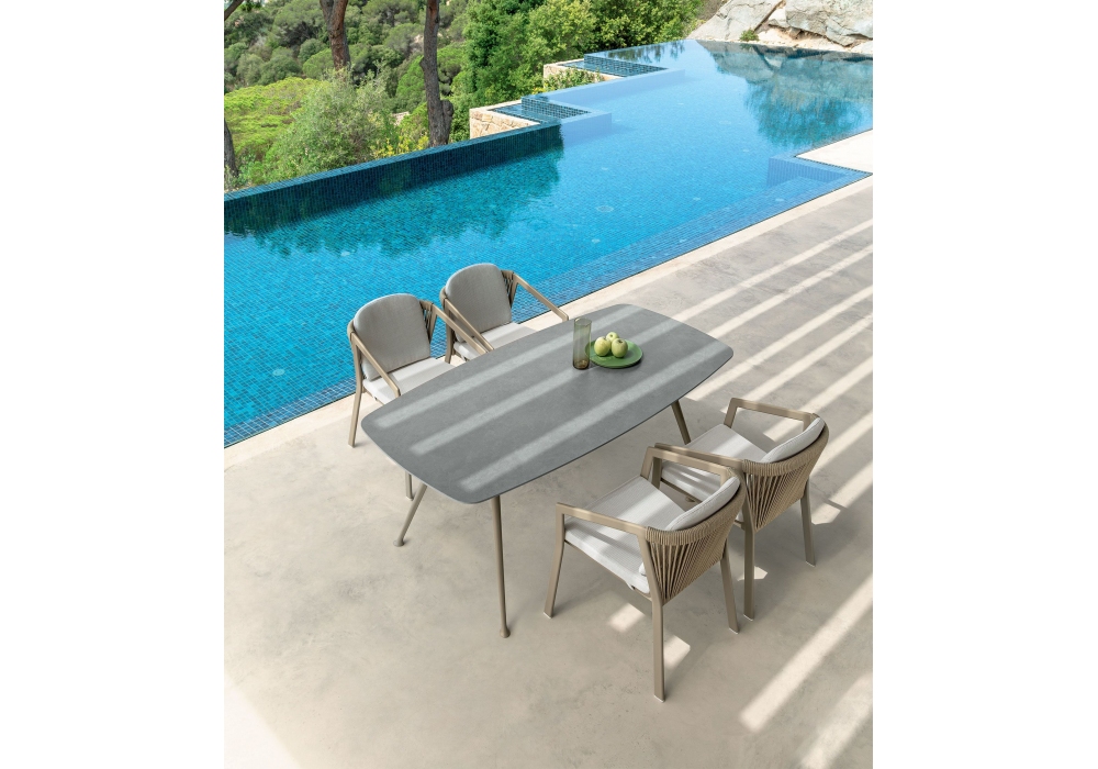 Nova designed by Talenti is a table with aluminum structure and stoneware top. Available in different finishes.