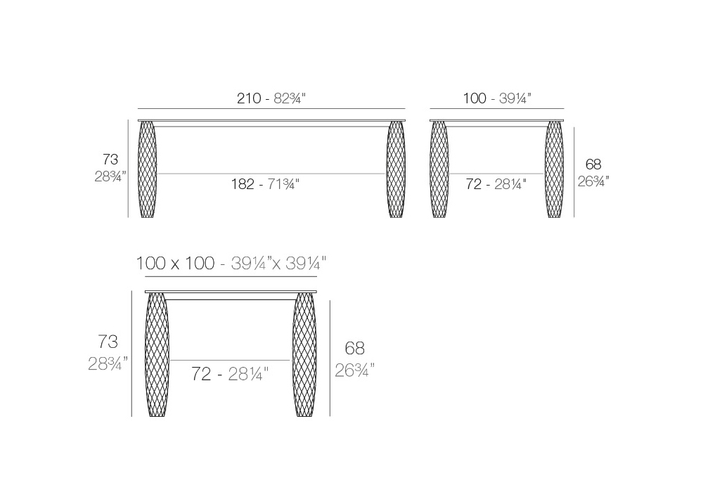 | Dimensions | 100 x 100 x H 73 cm; 210 x 100 x H 73 cm |