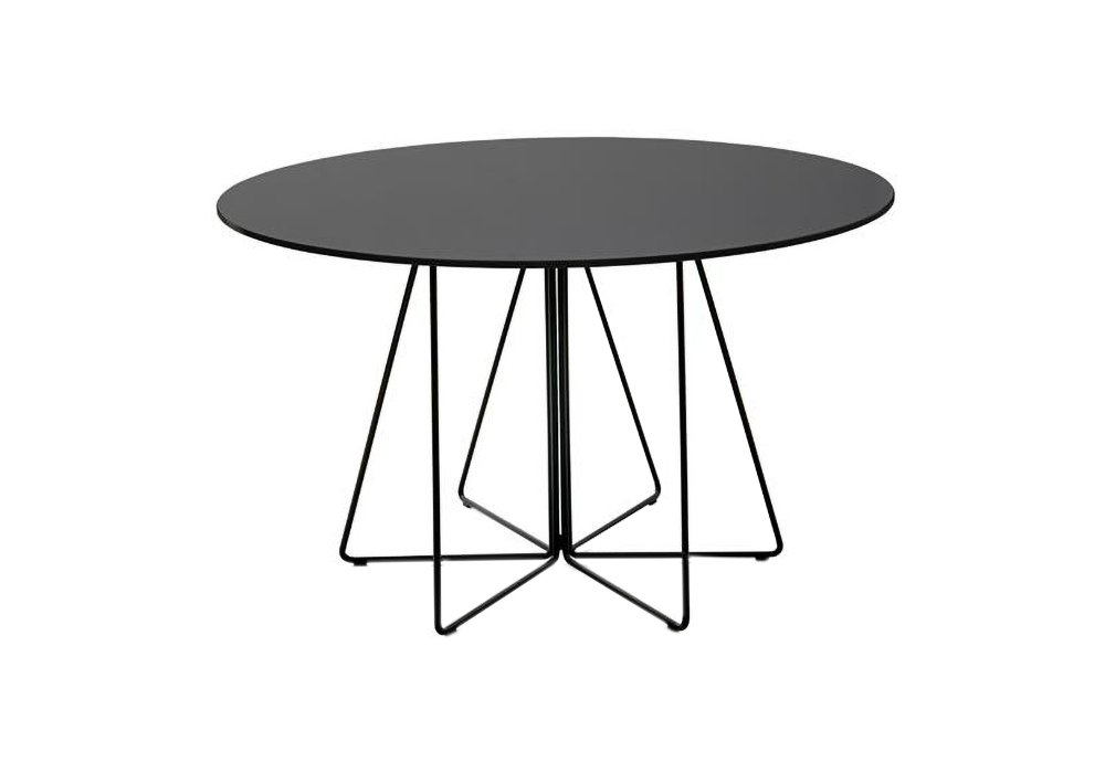 PaperClip Outdoor designed by Vignelli Designs for Knoll is a round table with a top in clear transparent glass or black or white painted Starphire. Base in steel rod in white or black Rilsan finish.