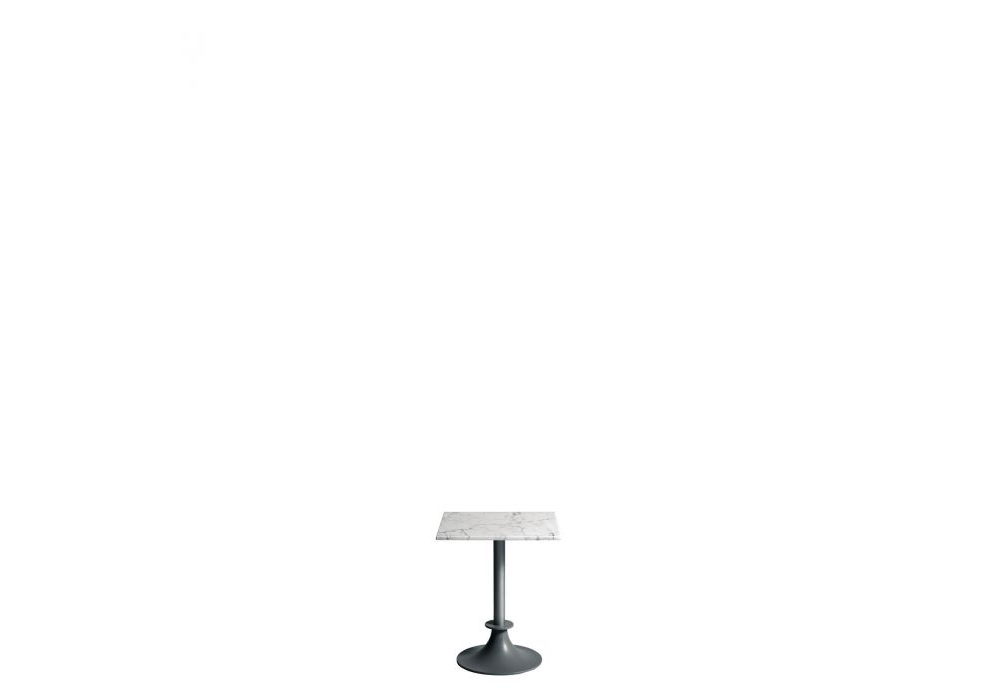 Lord YI designed by Philippe Starck + Palomba for Driade is a table with cast aluminum base painted in aluminum gray or anthracite black and column in anodized aluminum in silver or black. Top in white Carrara or black Marquina marble. The nuances of manual application characterize the aesthetics of the product. The final treatment makes the product water repellent and stain resistant. Indoor and outdoor use.