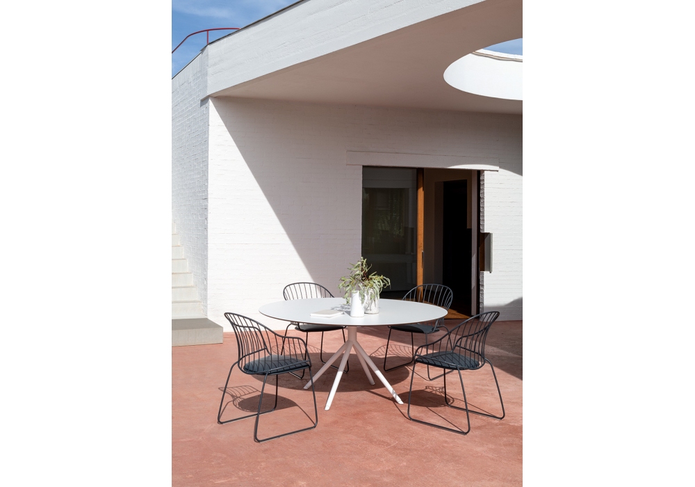 Alyza designed by Mario Ferrarini for Potocco is an outdoor chair with structure in painted metal rod.