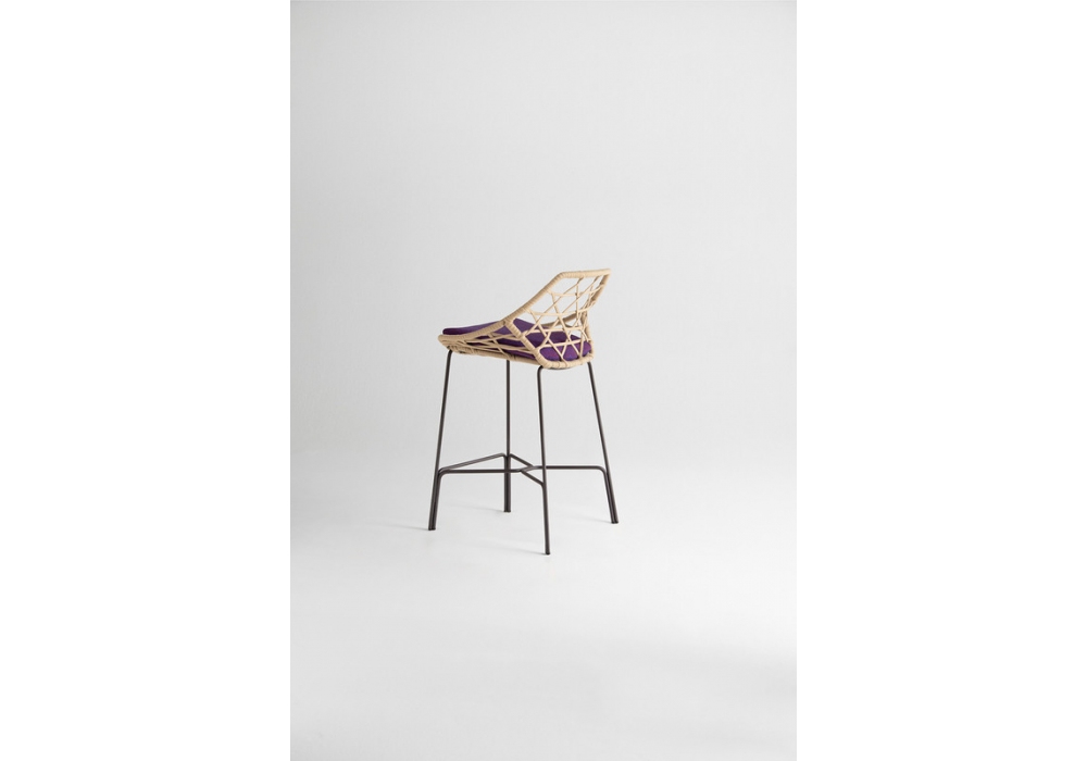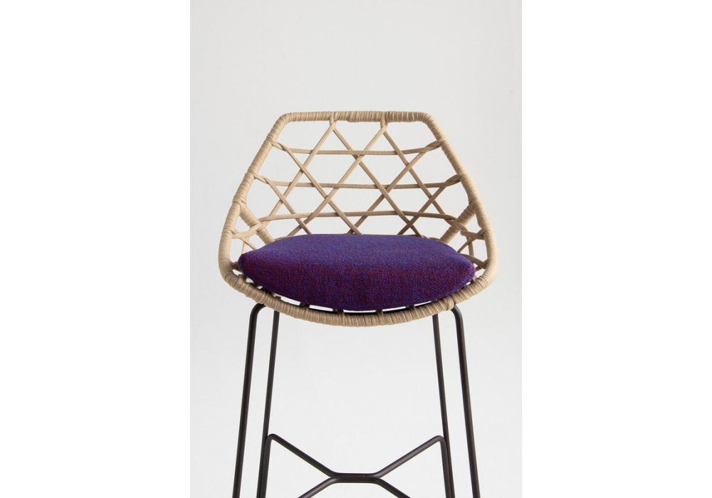 Cut Outdoor designed by Stephan Veit for Potocco is an outdoor stool with tubular metal structure painted in different finishes. Seat and backrest are covered in beige gas rope. The seat cushion is made of polyurethane foam covered in fabric suitable for outdoor use. Cut Outdoor is available in different finishes and models.