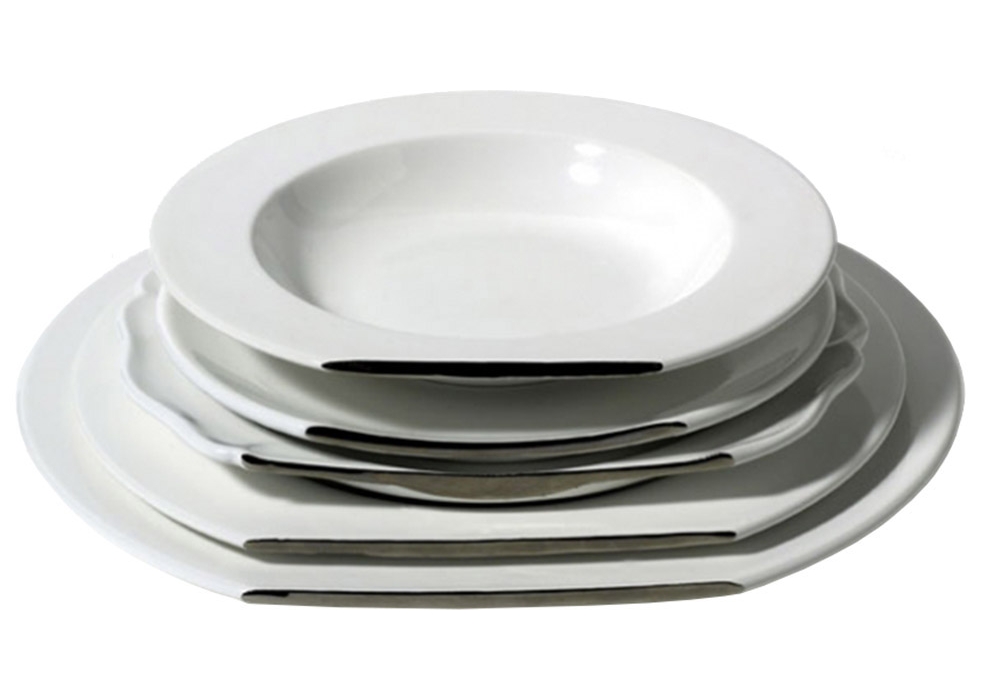 Slices of Design designed by Sam Baron for Bosa is a collection of plates in glazed ceramic, with a traditional shape and a touch of originality represented by the lateral cut in precious metals. The collection includes: a soup plate, a flat plate, a plate, a fruit plate, an antique plate,a dish and a salad bowl. Available in different finishes.