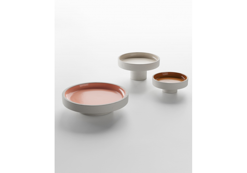 Totto designed by Maddalena Casadei & Dunja Webe for Kettal is a tall plate in opaque white majolica with colored enamel on the inside. The Totto plate is available in various diameters and heights.