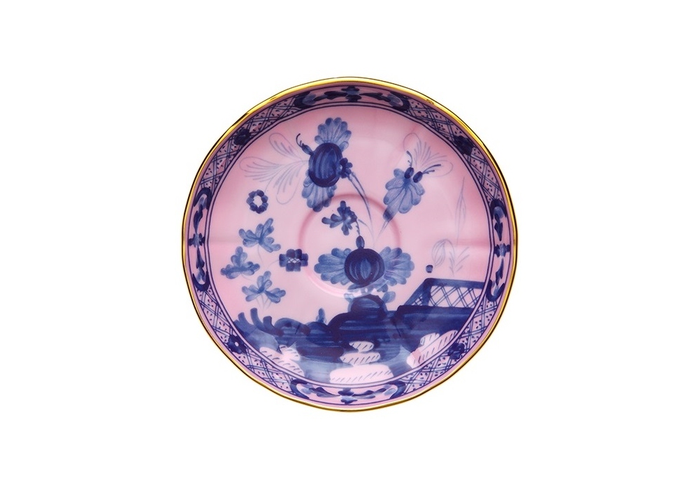 Piatto Tè Oriente Italiano Azalea designed by Ginori 1735 is a decorated saucer for tea mug.