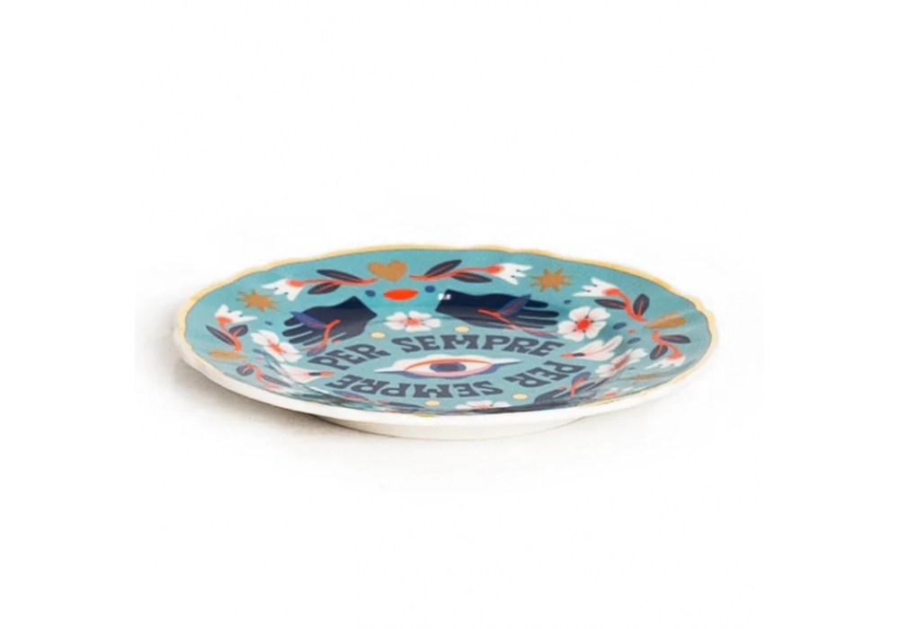 Per Sempre designed by Bitossi Home is a plate with a decalc inside. Suitable for dishwashers Max 250 washes. Not suitable for microwaves.