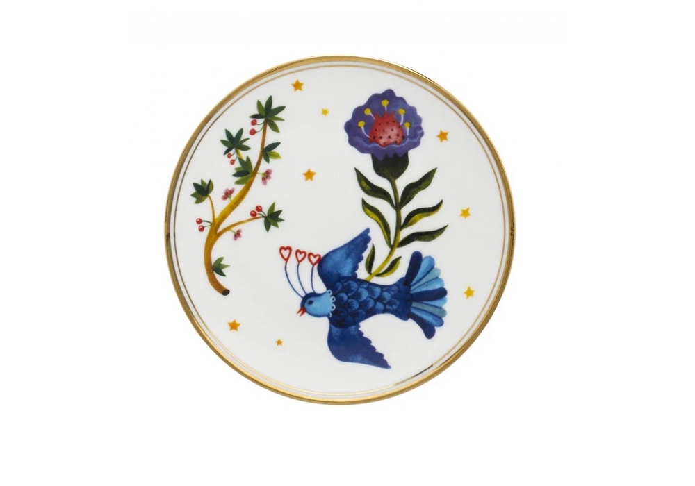 Profumo - Uccellino designed by Bitossi Home is a plate made of porcelain with a gold edge decalc. Suitable for dishwashers Max 250 washes. Not suitable for microwaves.