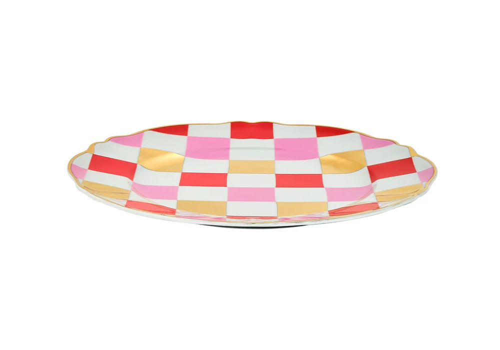 Torre signed by design LaTigre for Bitossi Home is a serving plate made of porcelain with gold decal and details. Suitable for dishwasher and a maximum of 250 washes. Not suitable for microwave.