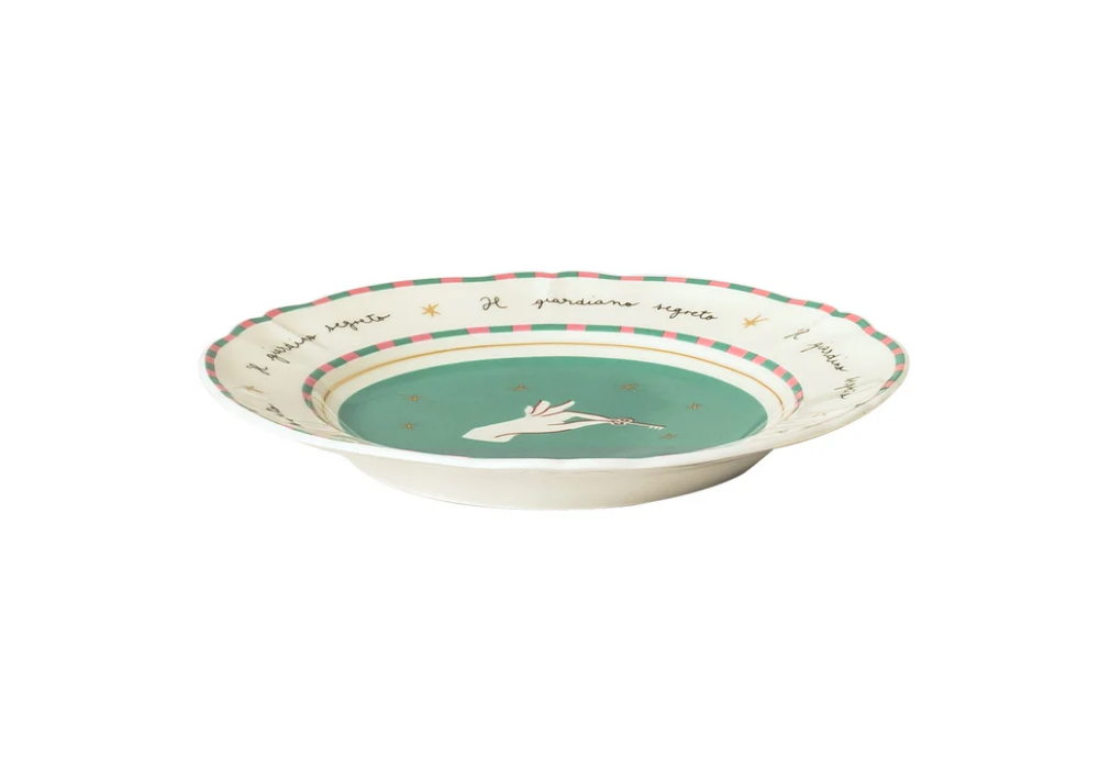 Mano designed by LaTigre for Bitossi Home is a fruit plate made of porcelain with gold decorations and details. Dishwasher safe and up to 250 washes. Not suitable for microwave.