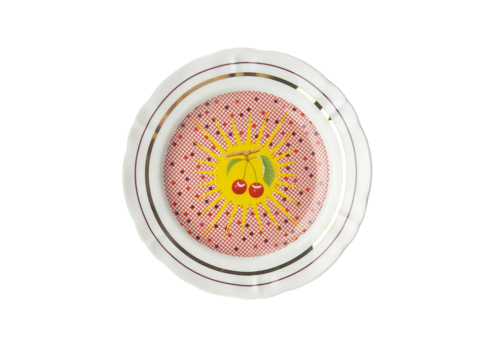 Ciliegie designed by Sam Baron for Bitossi Home is a fruit plate made of porcelain with gold decorations and details. Dishwasher safe and up to 250 washes. Not suitable for microwave.