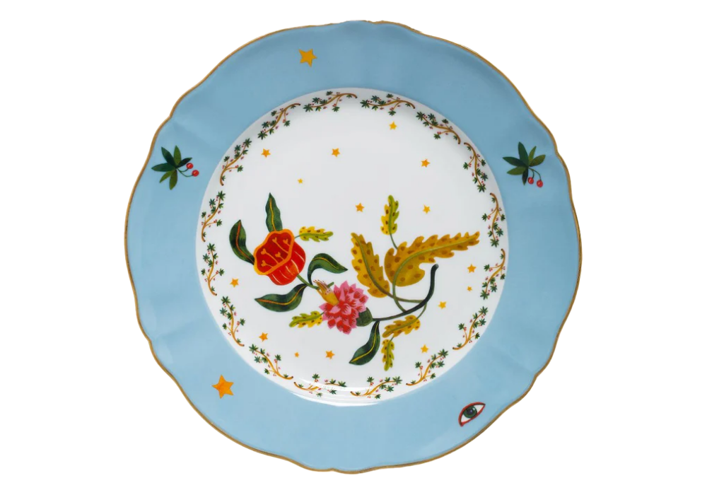 Profumo signed by design Aitch.Ro for Bitossi Home is a dinner plate made of porcelain with gold decal and details. Suitable for dishwasher and a maximum of 250 washes. Not suitable for microwave.
