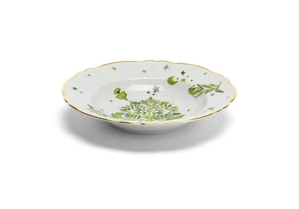 Eden signed by design Aitch.Ro for Bitossi Home is a deep plate made of porcelain with gold decal and details. Suitable for dishwasher and a maximum of 250 washes. Not suitable for microwave.
