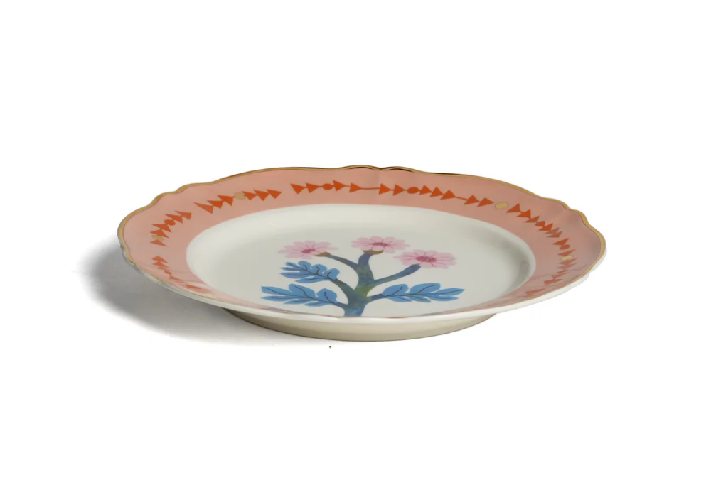 Primula designed by Monika Forsberg for Bitossi Home is a dinner plate made of porcelain with gold decal and details. Suitable for dishwasher and a maximum of 250 washes. Not suitable for microwave.
