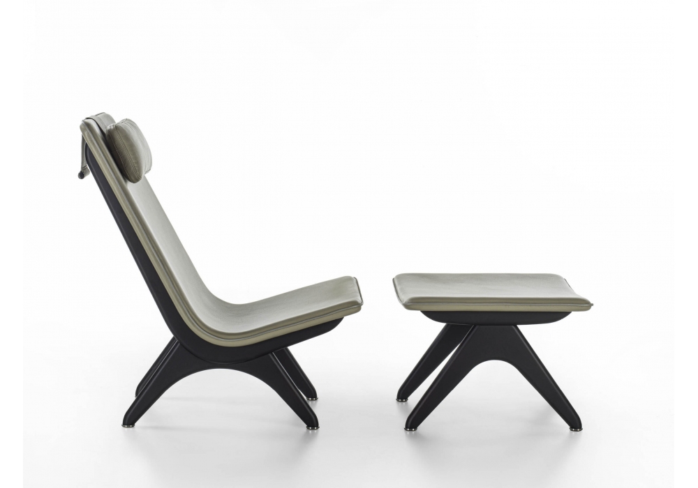Koko designed by Tollgard & Castellani for Porada is an armchair with a supporting structure in solid canaletta walnut with an asymmetrical shell modeled with a layer of polyurethane. Upholstery in different leather or fabric finishes.