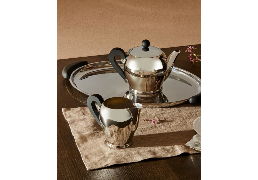 Bombé designed by Carlo Alessi for Alessi is a milk jug made of 18/10 stainless steel and bakelite.