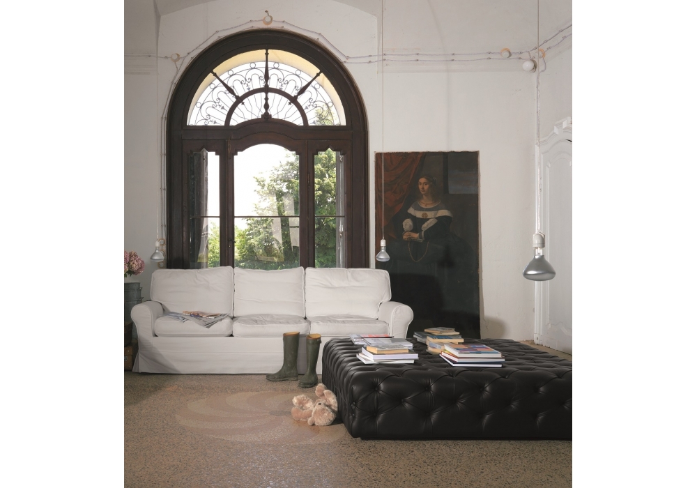 Capitonnè designed and produced by DePadova is a pouf with wooden frame and polyurethane foam padding. Fixed cover in fabric or leather in different finishes.