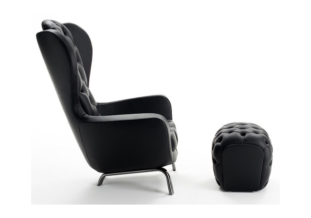 Guelfo designed by Lapo Ciatti for Opinion Ciatti is a padded pouf made with capitonné work. Upholstery in various types of fabric and leather. Available in different finishes.