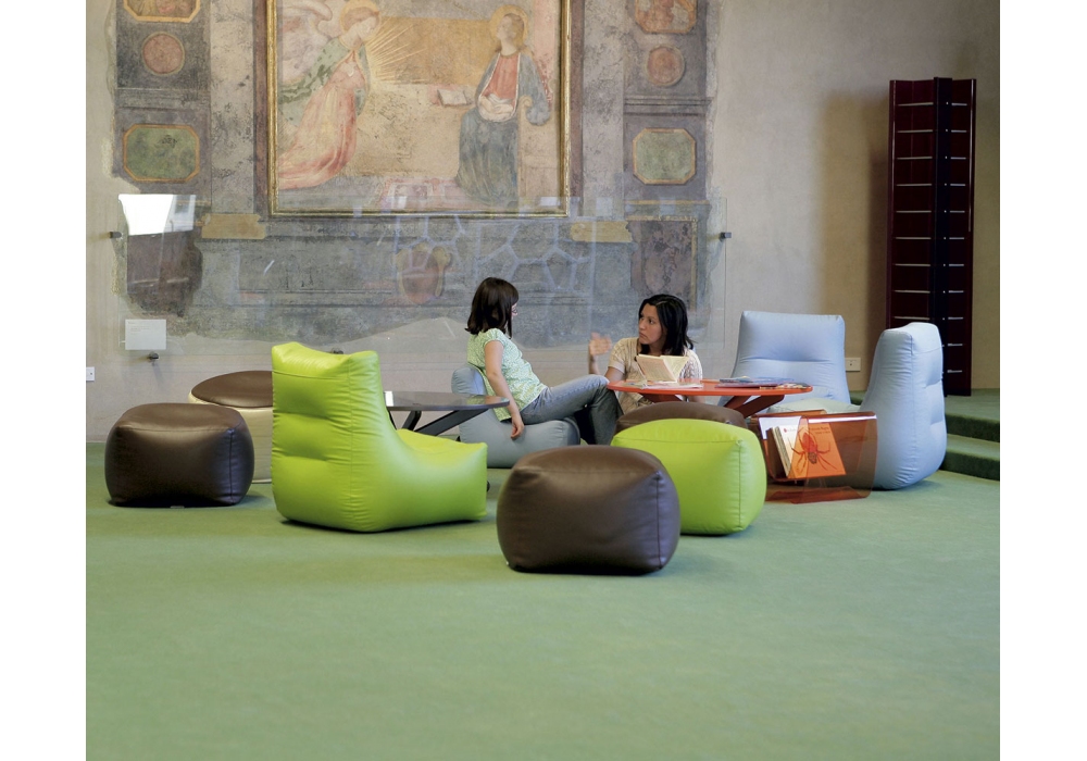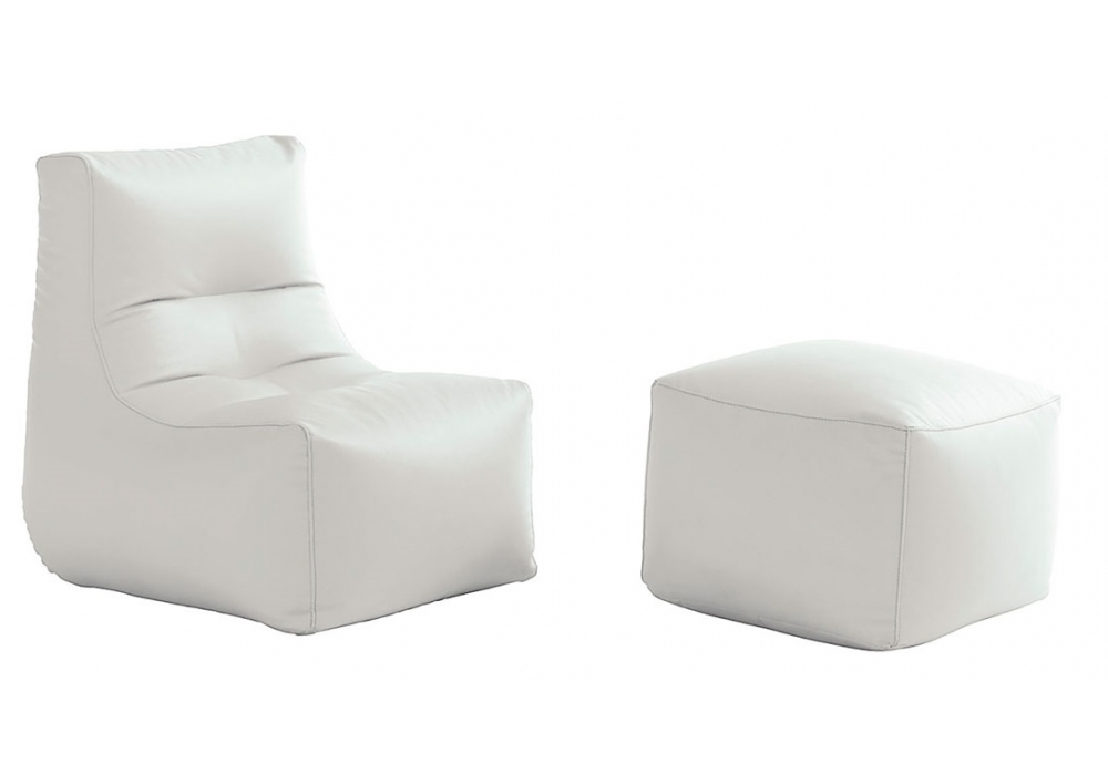 Morfino designed by Casamania & Horm is a pouf composed of a casing filled with expanded polystyrene pellets and a removable cover in eco-leather, fabric for indoors, or fabric for outdoors.