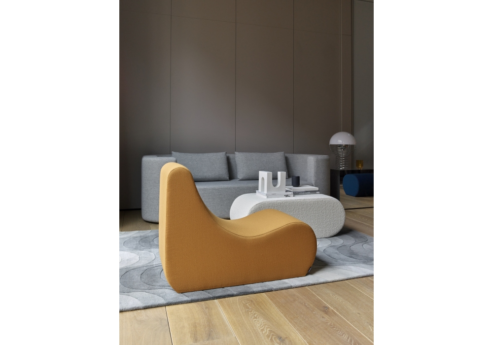 Welle 5 designed by Verner Panton for Verpan is a pouf made in polyurethane foam and MDF base with nylon feet. The upholstery is available in multiple colors and fabric variants.