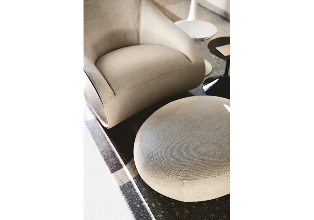 875 Derby designed by Noé Duchaufour Lawrance for Zanotta is a pouf with upholstery in polyurethane/ heat-bound polyester fi bre with elastic strips suspension. Removable fabric or leather cover. Steel frame.
