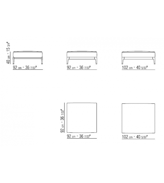 Adda designed by Antonio Citterio for Flexform is a beautiful pouf with metal frame and generously padded cushion in goose feathers bordered by a thick stitching in relief. Removable upholstery in fabric or leather. Metal feet available in different finishes. Also available in 2 sizes.
