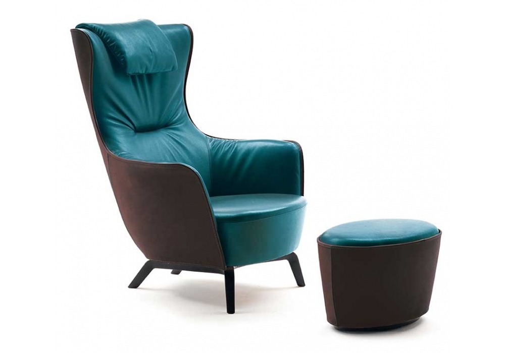 Mamy Blue designed by Roberto Lazzeroni for Poltrona Frau is a pouf with structure and seat upholstered in different finishes.