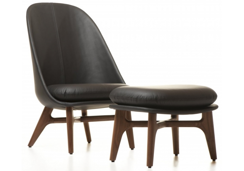 Solo designed by Neri & Hu for De La Espada is an ottoman with seat upholstered in fabric or leather and wooden legs available in different finishes. Perfect to match to the lounge chair of the same collection.